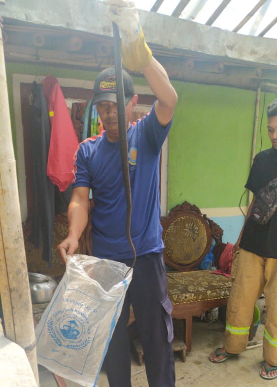 Ketika hendak ke kamar mandi anak dari Napak Rohmat terkejutkarena ada ular didalam kamar mandi kemudian Bapak rohmat melapor ke Damkar WMK Tempuran