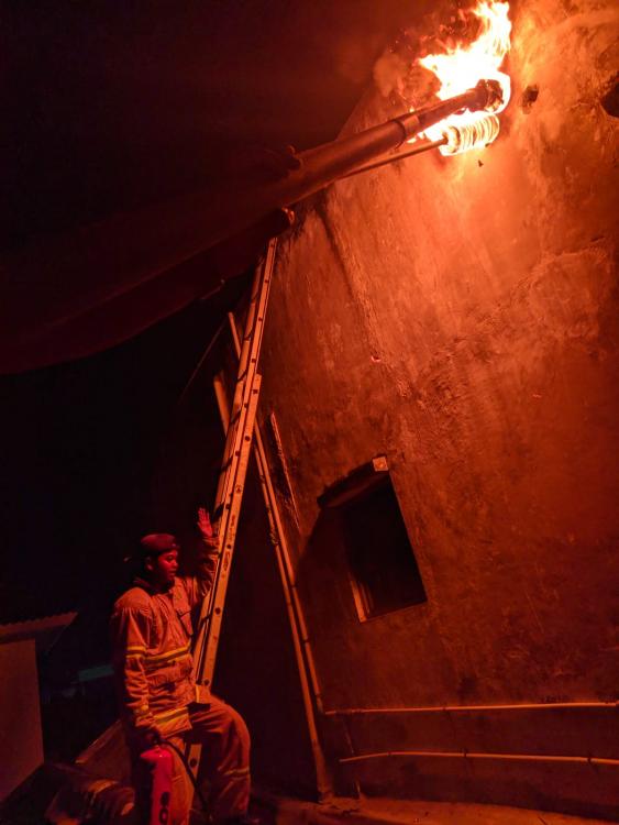 Setelah mendapat laporan tim regu 2 induk menindak lanjutinya tim melakukan evakuasi sarang tawon dengan dibakar agar tawon tidak menyebar dan menimbulkan korban
