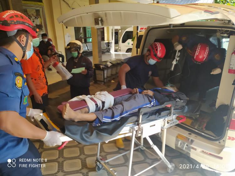 Setelah menerima laporan dari saksi, tim ambulance damkar kabupaten magelang menindak lanjuti laporan dan menuju ke lokasi untuk melakukan pertolongan : 1. Stabilisasi korban 2. Cek kondisi umum - Tn. Paryono (CKB dan Dislokasi tumit kanan) - An. Restu (kesan MD dinyatakan MD dilokasi oleh dokter RSU Muntilan pukul 14.15) 3. pemasangan head stabilizer (neckolar) 4. pemberian 02 masker 8 lpm (Tn. Paryono) 5. Pembidaian dislokasi (Tn. Paryono) 6. Evakuasi ke IGD RSUD Muntilan