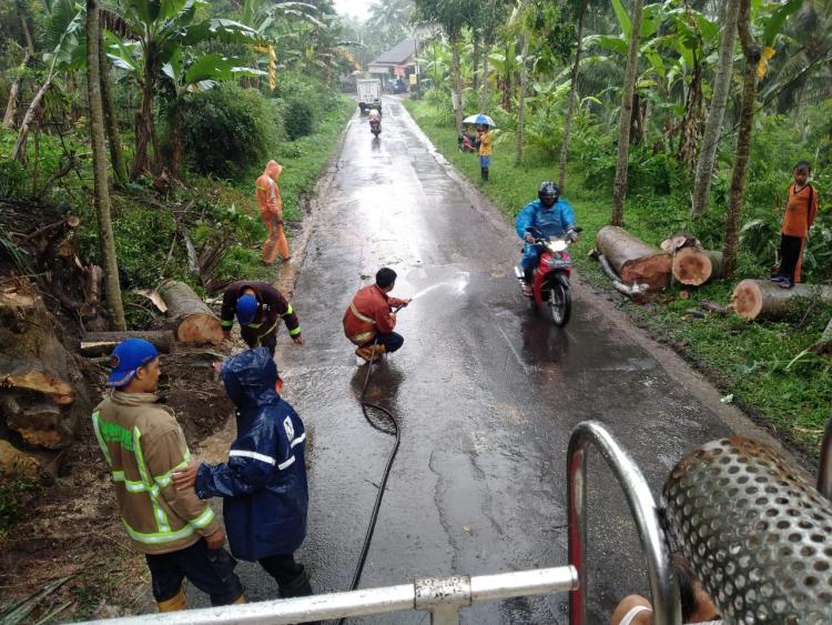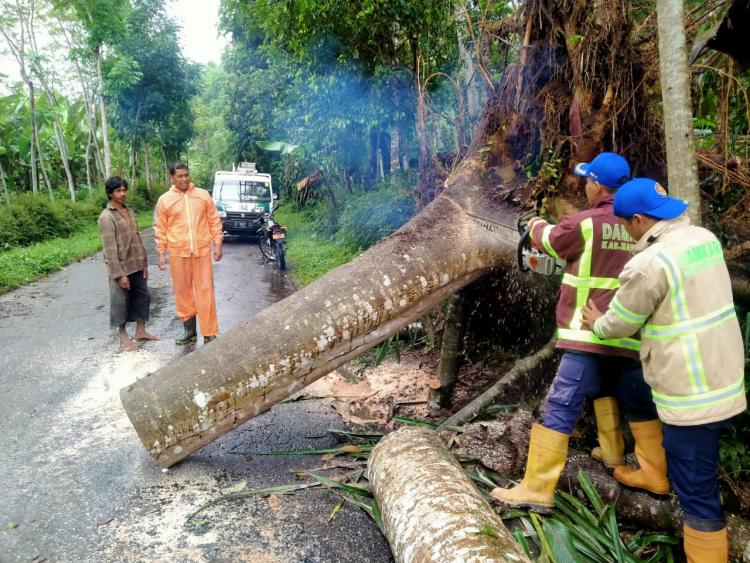 Hujan dengan intensitas tinggi disertai angin kencang sehingga menyebabkanb pohon tumbang menutup akses jalan penghubung pucang - kayupuring