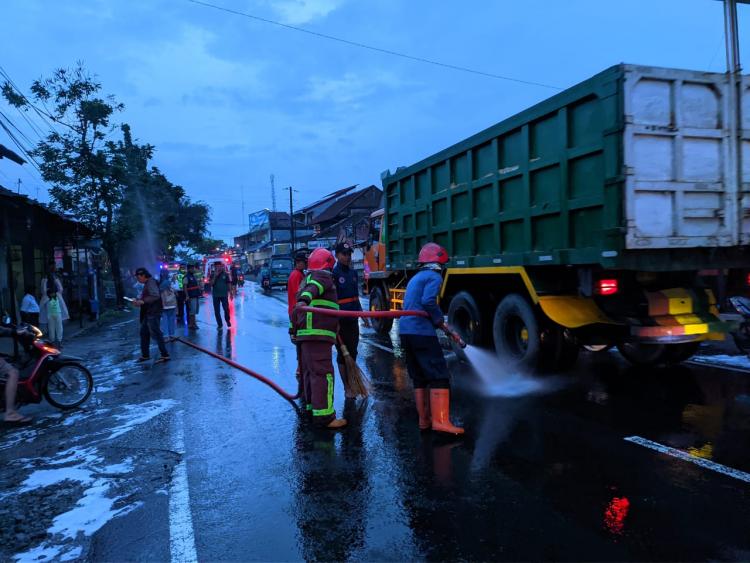 Adanya laka sebuah truk terbalik mengakaibatkan solar tumpah di jalan dianggap membahayakan pengguna jalan dan mengakibatkan kemacetan panjang kemudian saksi melapor ke WMK Muntilan