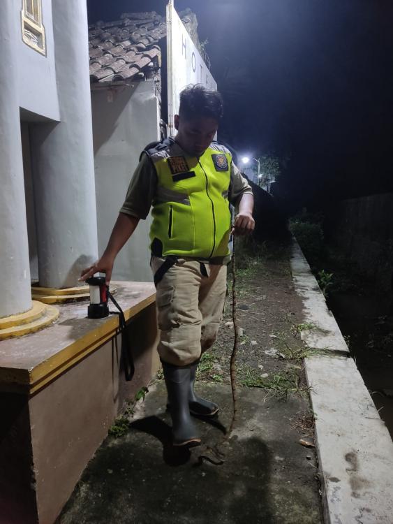 Saksi melihat ular bergelantungan di kabel depan rumah. Karena takut ular masuk kerumah, saksi kemudian melapor ke Pemadam kebakaran Kab.Magelang.